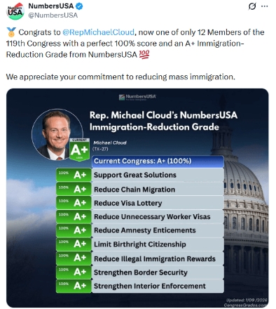 It is undeniable that President Trump has done a tremendous job securing our border, but Congress still has a lot of work to do to ensure it remains secure. Our border security and immigration policy should not be left victim to whether or not a new Presidential Administration would like to enforce the laws. In 2026, Congress must prioritize closing the loopholes and outdated processes that left our immigration system crippled during the Biden Administration. I’m pushing legislation that removes the magnets that incentivize illegal immigration—things like requiring Congressional approval for Temporary Protected Status designations, ending the visa lottery, taxing remittances, and fighting chain migration.