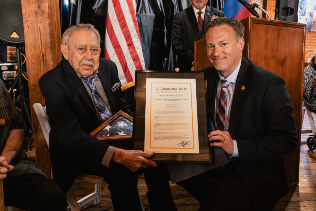This past week, I had the distinct honor and privilege of celebrating the 100th Birthday of Abraham Suarez of Victoria, Texas. Suarez, born March 16, 1926, in Tynan, Texas, answered the call to serve our nation shortly after turning 18 during World War II. He served in the Army Air Corps in Okinawa, helping supply U.S. forces and earning the World War II Victory Medal, the Asiatic-Pacific Campaign Medal, and the Good Conduct Medal.